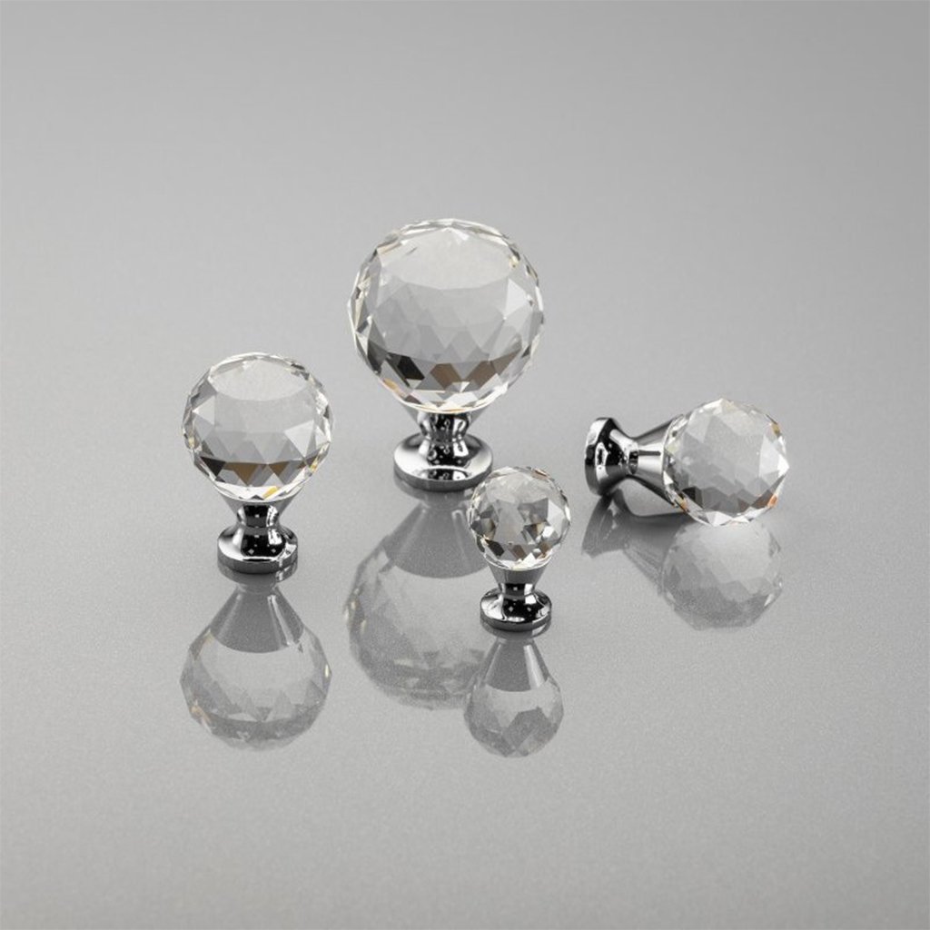Krištáľový gombík je detail, ktorý krásne zdôrazní luxusné tkaniny, ako je satén alebo čierna koža. Ideálne pre interiéry v očarujúcom a modernom štýle.