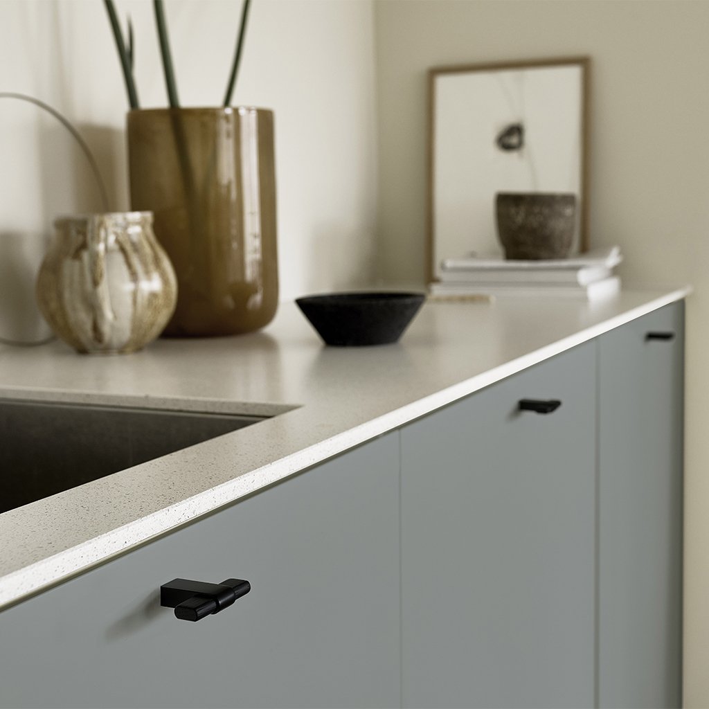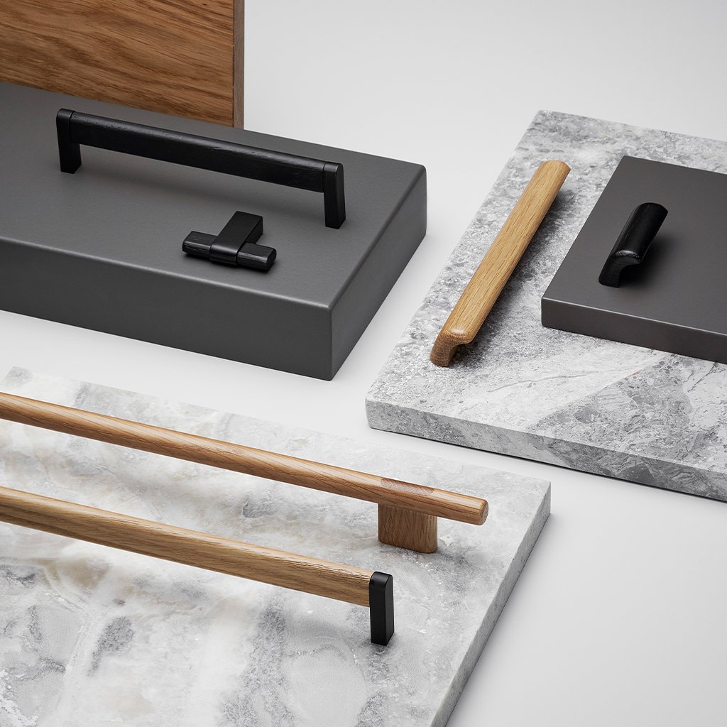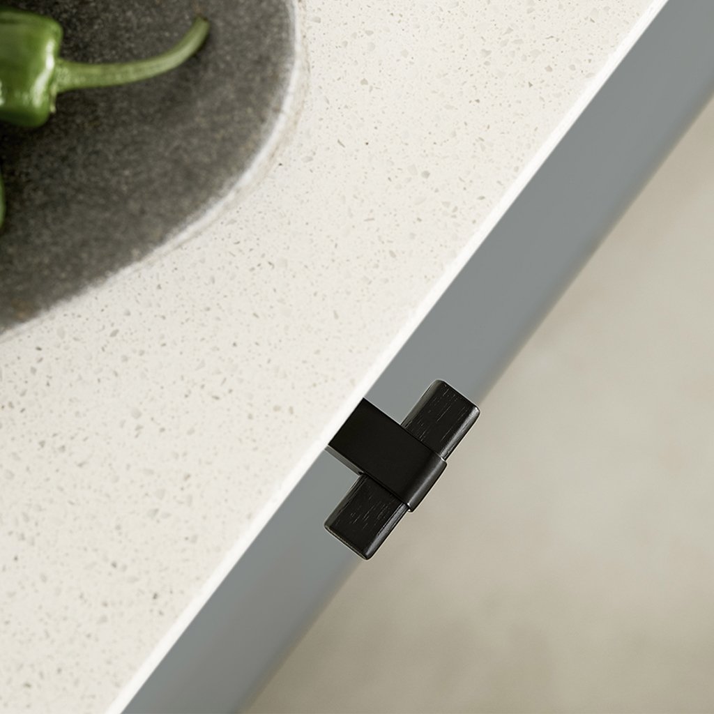 Knopka Furnipart CROSSING je elegantné D-tvarované madlo, ktoré vzniklo spojením dvoch materiálov – dreva a kovu.