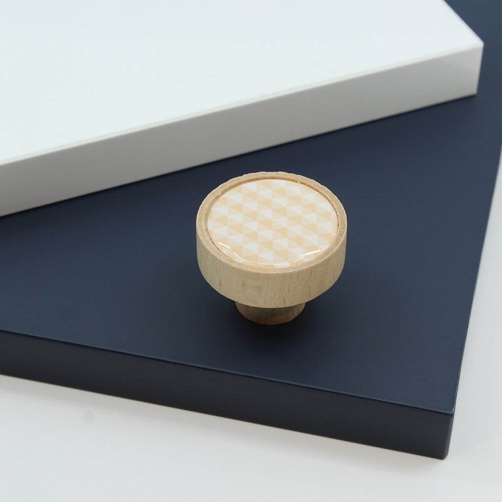 Knopok GD08-D10-F36-V29 prináša unikátnu kombináciu prírodného bukového dreva a moderného dizajnu s oranžovými trojuholníkmi. Tento jedinečný vzor vnáša do interiéru hravosť a kreativitu, pričom zachováva eleganciu prírodných materiálov.