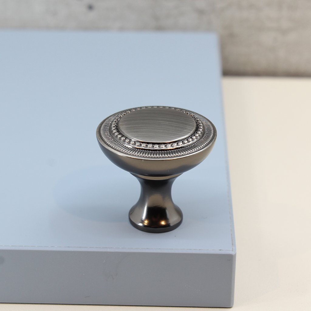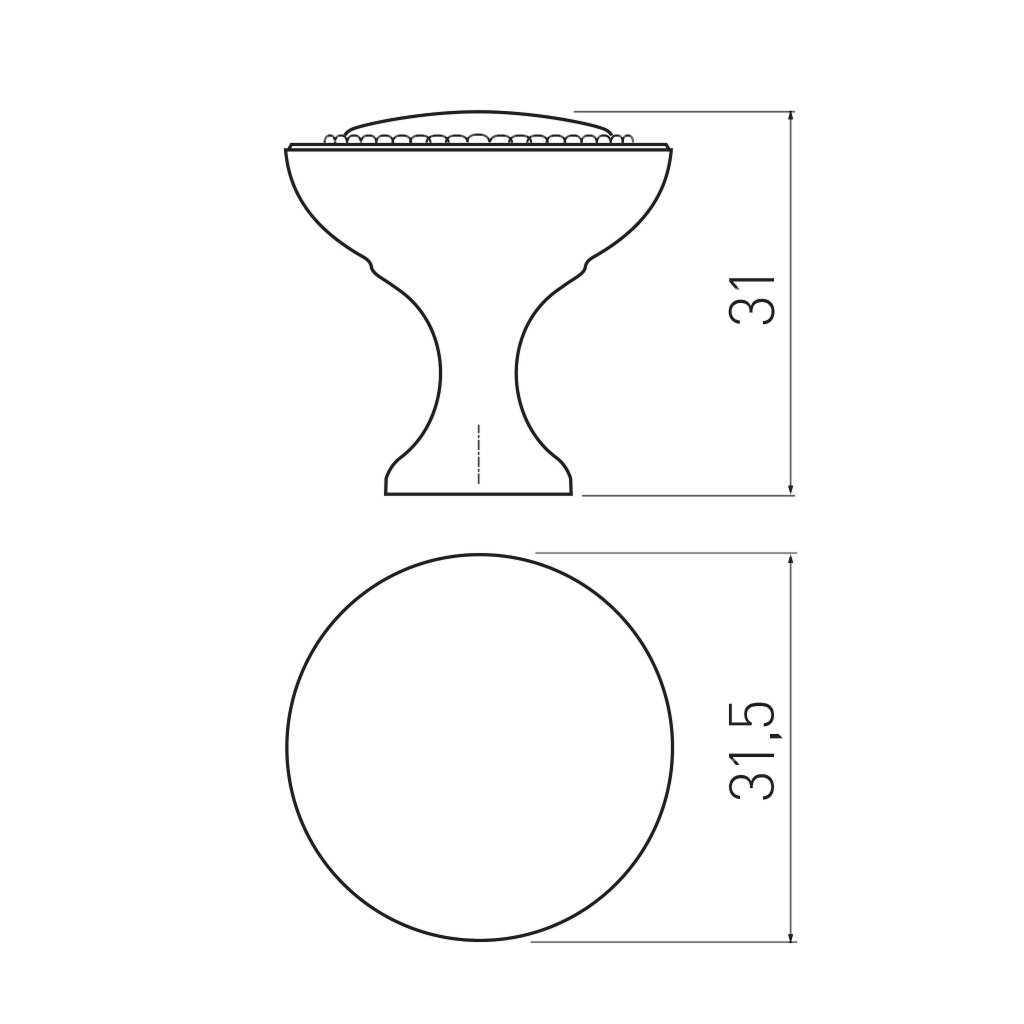Hodí sa do interiérov zariadených v modernom, retro a vintage štýle. Gombík má hore dekorácie vo forme drážok, čo prispieva k jeho zvláštnemu kúzlu. Gombík je k dispozícii v troch farebných prevedeniach: satén, kartáčovaný titán a čierny matný.
