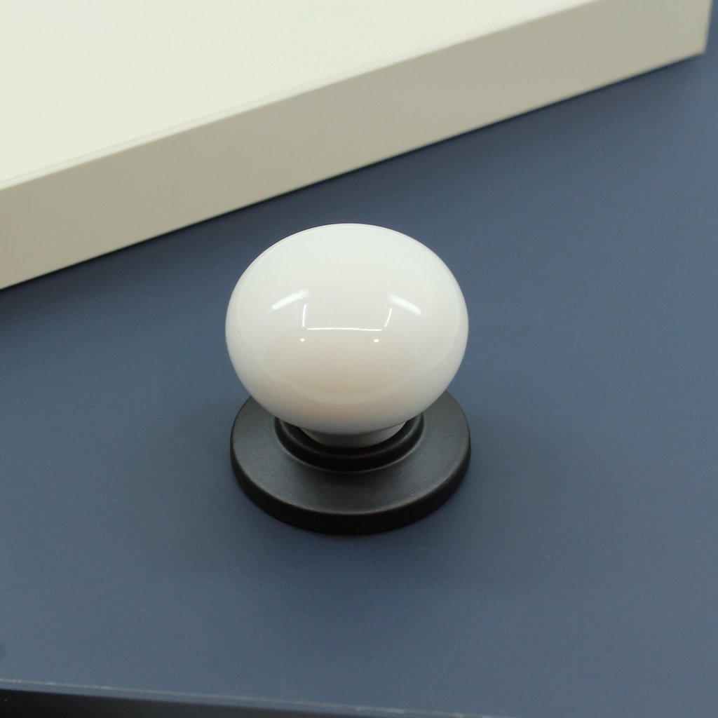 Štýlový dizajn: Biela porcelánová knopka doplnená o čierne prvky pre elegantný vzhľad.