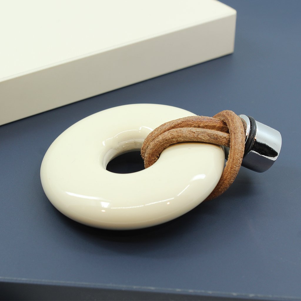 Elegantný dizajn: Biela porcelánová knopka s lesklými chrómovými detailmi.