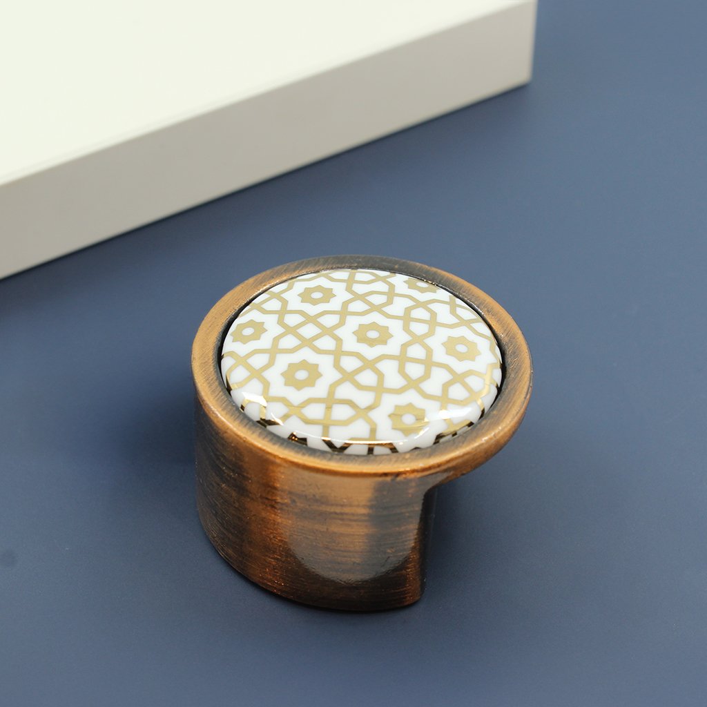 Štýlový dizajn: Biela porcelánová knopka so vzorovaným detailom pre unikátny vzhľad.