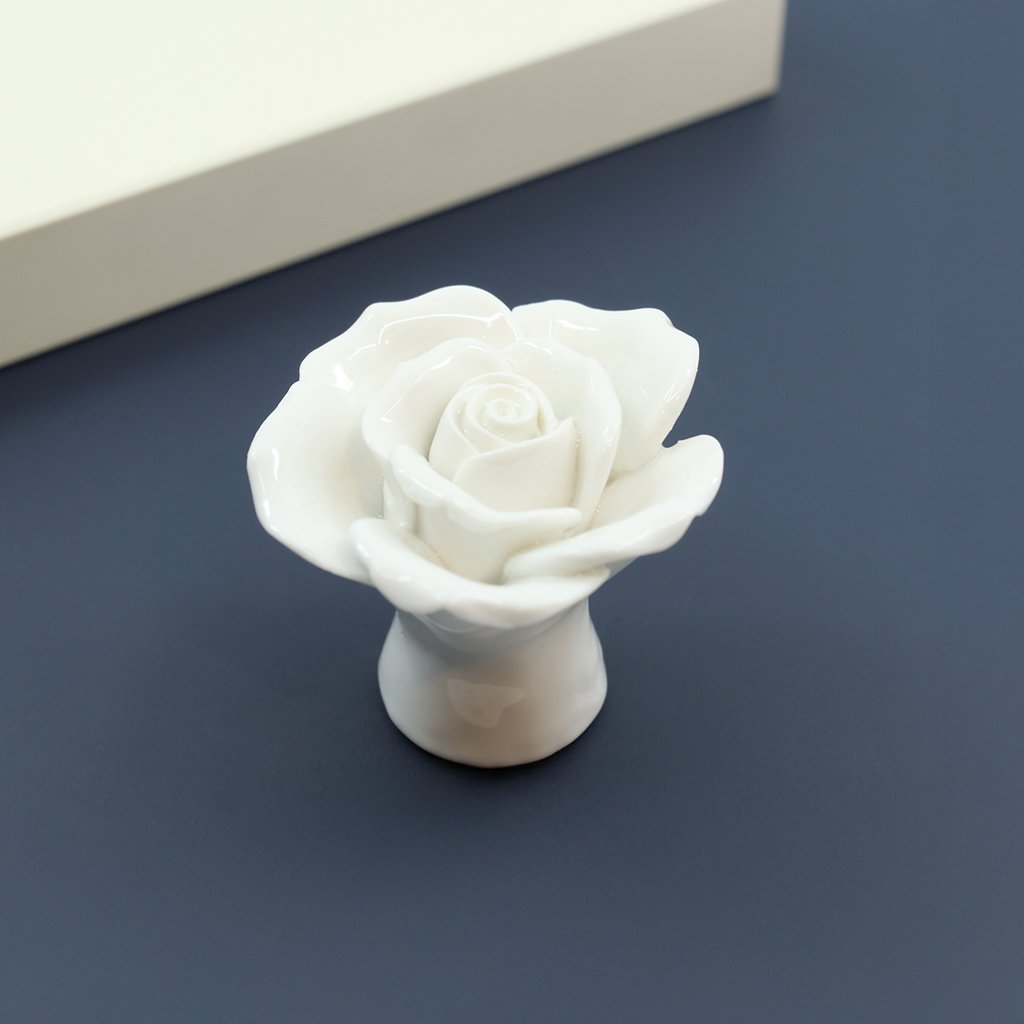 Knopka Tomurcuk G110 je jedinečný a elegantný doplnok pre váš nábytok. Vďaka svojmu romantickému tvaru ruže a bielemu porcelánovému prevedeniu prináša do interiéru jemnosť a sofistikovanosť. Ideálna voľba pre milovníkov vintage, klasického a shabby chic štýlu.
