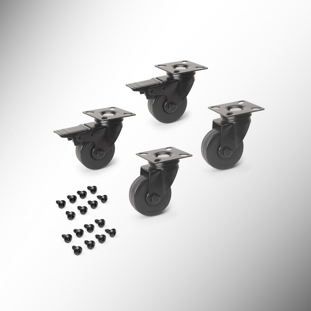 - Súprava: Obsahuje 4 kolieska (2 s brzdou, 2 bez brzdy) a montážne skrutky.