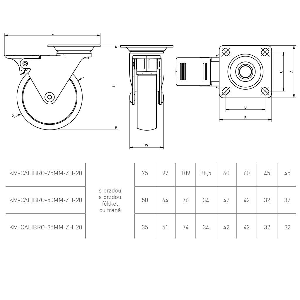 Čierne otočné koliesko CALIBRO s brzdou a priemerom 50 mm je ideálne pre plynulé a bezpečné presúvanie nábytku. S brzdovým mechanizmom, ktorý zabezpečuje stabilitu pri zastavení, je vhodné na použitie na rôznych podlahových povrchoch, bez rizika poškriabania či iného poškodenia.