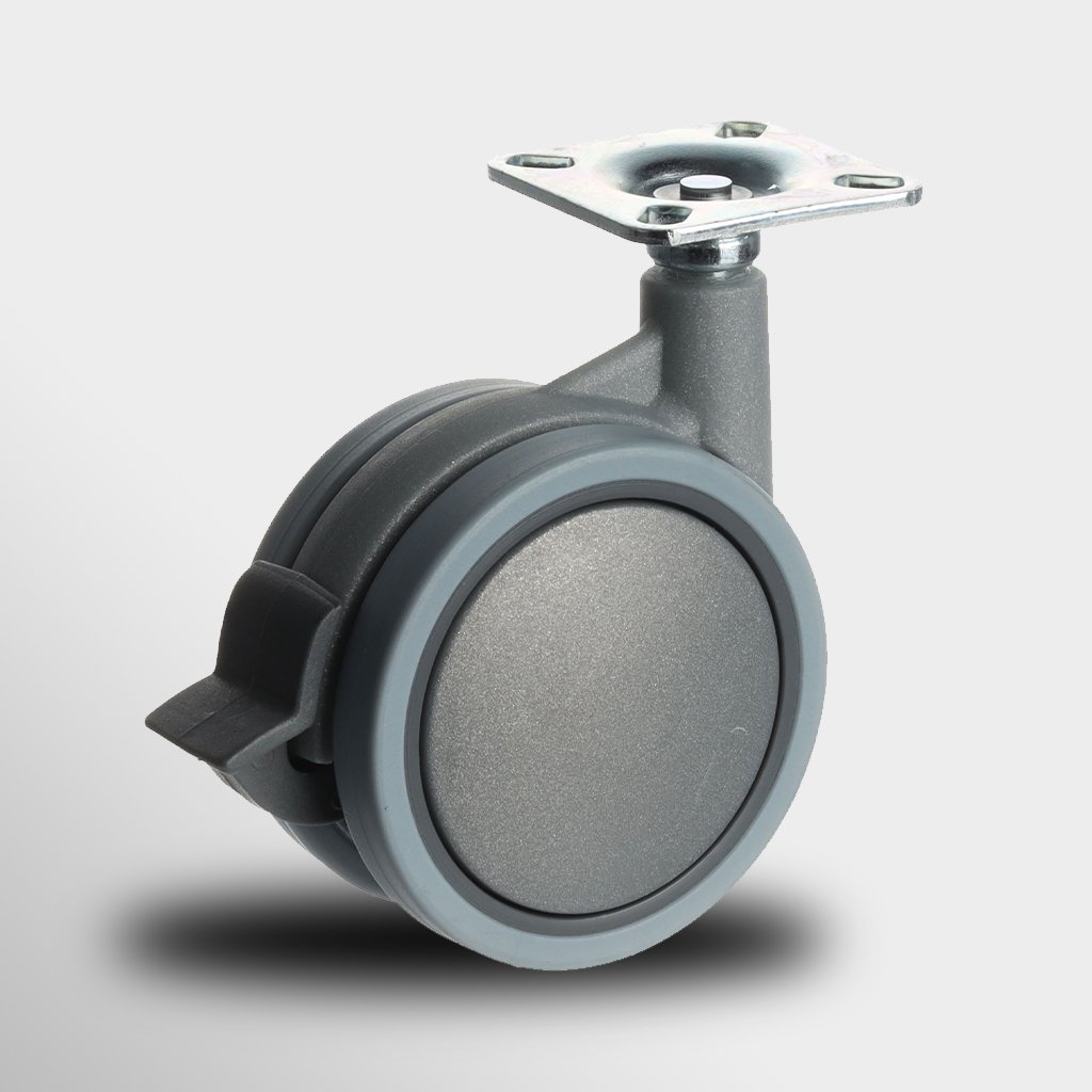 Koliesko nábytkové D75, platnička 48 x 48 mm, 75 mm, Sivá