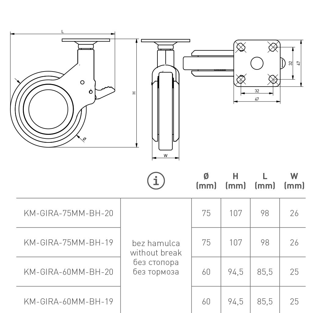 Nábytkové koliesko GIRA s priemerom 60 mm je ideálne na ľahké premiestňovanie nábytku, ako sú otočné kreslá, skrinky a ďalšie kusy nábytku. Toto koliesko je vybavené brzdou, ktorá umožňuje zablokovať koliesko pre lepšiu stabilitu, čo je užitočné najmä pri nábytku, ktorý sa nemá pohybovať.
