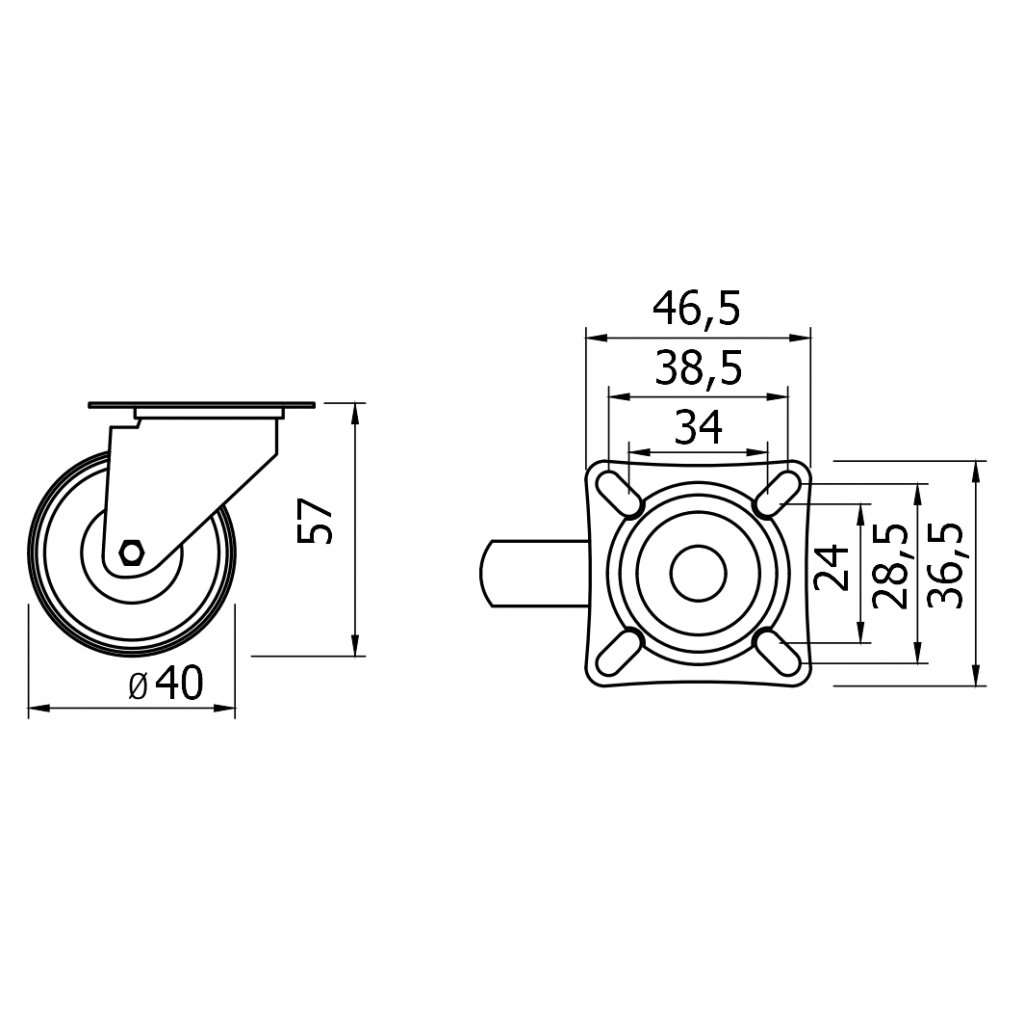 Malé otočné koliesko s priemerom 40 mm, ideálne pre ľahký nábytok a mobilné zariadenia. Zaručuje plynulý pohyb a dlhú životnosť.
