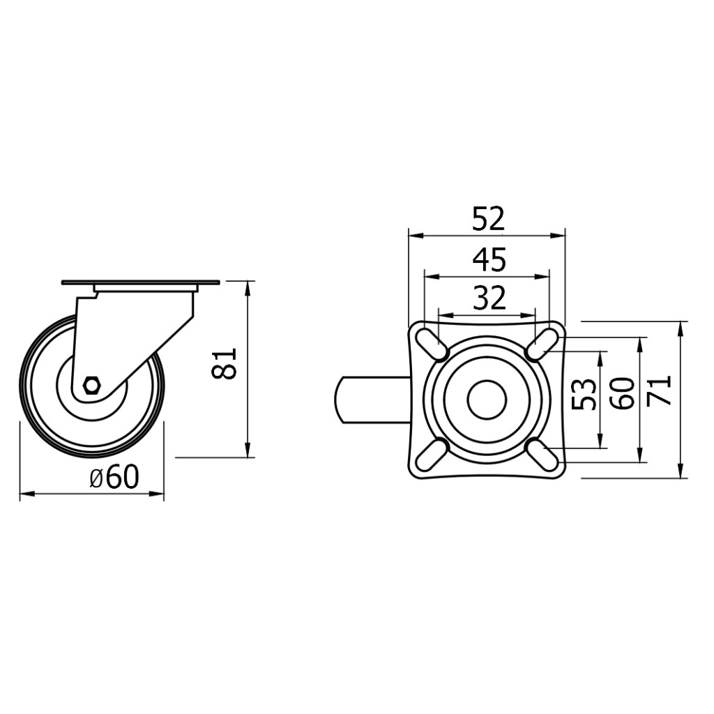 Koliesko s priemerom 60 mm je ideálne pre nábytok a zariadenia, ktoré vyžadujú pohyblivosť bez brzdy. Odolné a ľahké na inštaláciu.