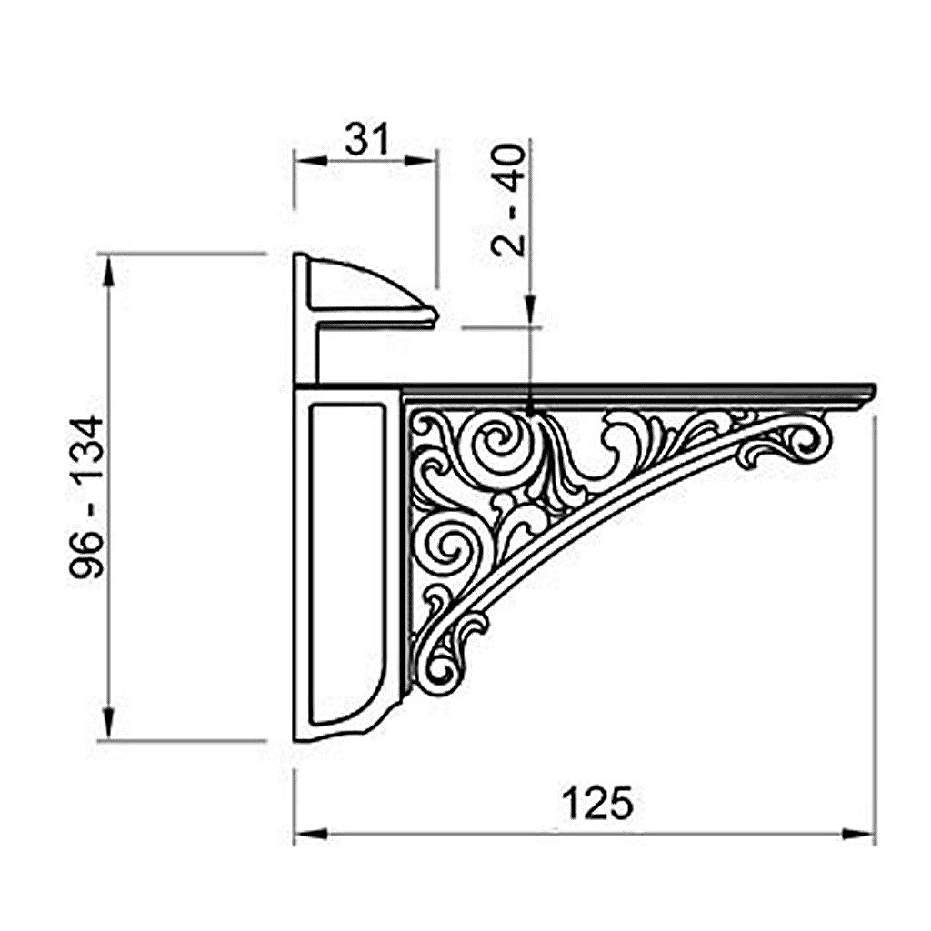 Konzola policová BAROCCO, Staré zlato je ideálnym doplnkom pre sklenené police a police v štýle vintage. Je vyrobená zo železa a povrchovo upravená v starozlatom odtieni. Nosnosť konzoly je 40 kg, čo zaručuje vysokú stabilitu a pevnosť. Minimálna hĺbka police je 120 mm a podporuje police s hrúbkou od 2 do 40 mm. Tento produkt je skvelý pre elegantné interiéry s retro vzhľadom, a hodí sa ako pre knihy, tak aj dekoratívne predmety.