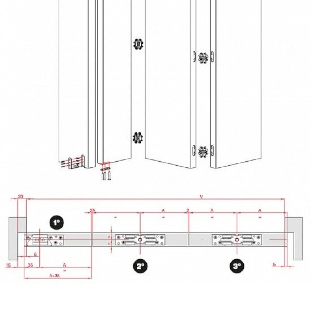 Kovanie na posuvno-skladacie dvere skryté závesy 2,5 krídla - Accordion -