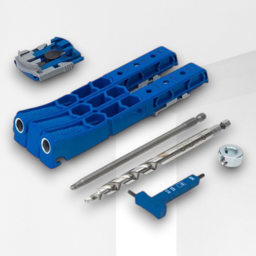 Ukazovateľ hrúbky materiálu a vrták s jednoducho nastaviteľným dorazom uľahčuje prácu, zatiaľ čo protišmyková základňa drží prípravok pevne na mieste. Vďaka tomu vždy vyvŕtate dokonale umiestnené skryté spoje. Všetko je uložené v pevnom puzdre, ktorého súčasťou je aj úložný priestor pre skrutky do dreva Kreg (súčasť balenia). Odolná konštrukcia a puzdra zaisťujú dlhú životnosť.