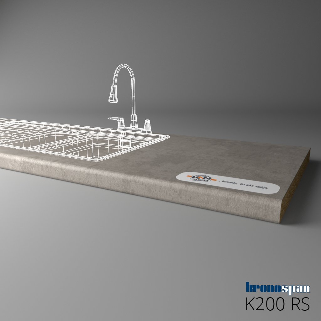 KRONOSPAN - Pracovná doska - K200 RS - ABS - Light Grey Concrete - 2050 x 900 x 38 mm