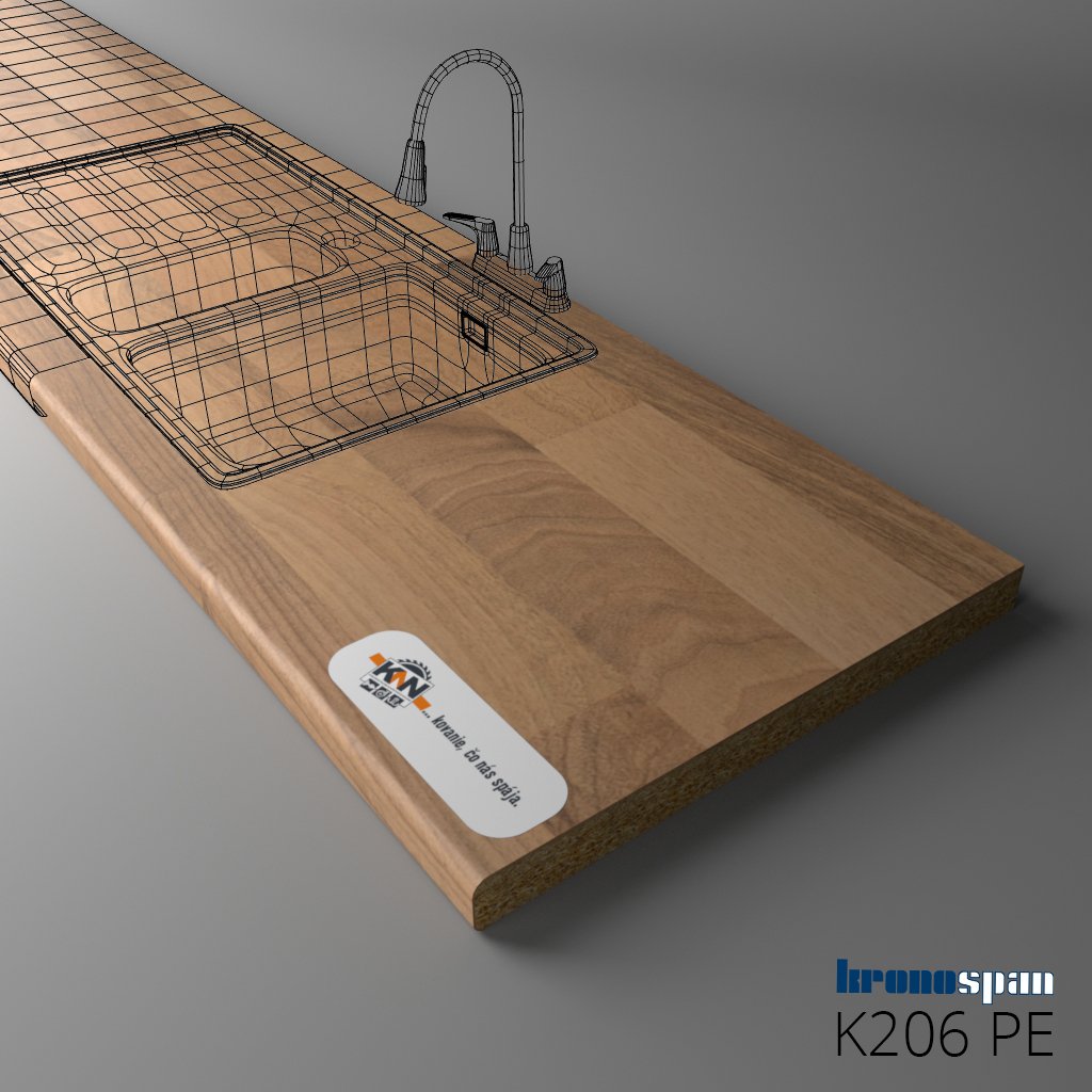 KRONOSPAN - Pracovná doska - K206 PE - Porterhouse Walnut - 2050 x 900 x 38 mm