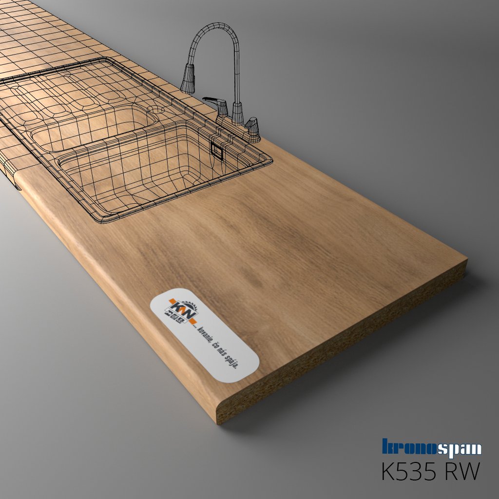 Základom našich pracovných dosiek s okrúhlym okrajom sú surové drevotrieskové dosky pokryté dekoratívnym HPL laminátom a spevnené na prednej strane špeciálnou HDF lištou, vďaka čomu sú ideálne ako pracovné dosky v kuchyniach, pulty v kanceláriách a obchodoch. Pod profilovanou hranou je po celej dĺžke pracovnej dosky umiestnená špeciálna silikónová lišta, ktorá vytvára bariéru proti odkvapkávaniu a zadržiava vodu. Môžu byť dodané s mierne zaobleným profilom v tvare U s polomerom 3,3 mm a sú k dispozícii aj s obojstranným profilom v tvare U, ktorý je ideálny pre raňajkové bary a stredové kuchynské ostrovčeky.