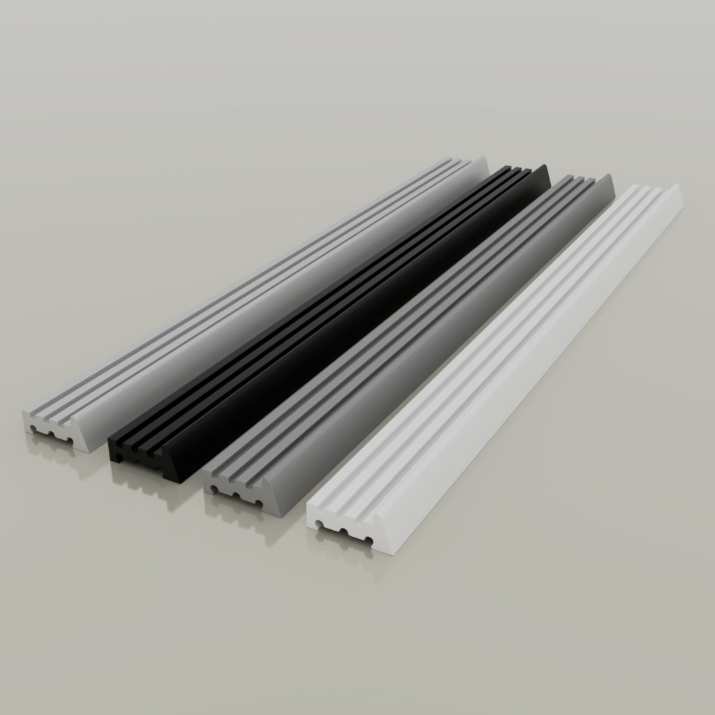 Profil L06 s použitím silikónu ako alternatíva k samotnému silikónovaniu zástien. Výhody: silikón nie je viditeľný (eliminácia negatív pri použití silikónu: nedokonalé nanesenie a zarovnanie, starnutie, zmena farby a celistvosti silikónu), vzniká estetický a jemný detail tenkého profilu v prevedení hliník, nerez, čierna alebo biela. Drážkovanie profilu zabezpečuje, že silikón plní tesniacu funkciu ale nevytlačí sa na pohľadovú stranu.