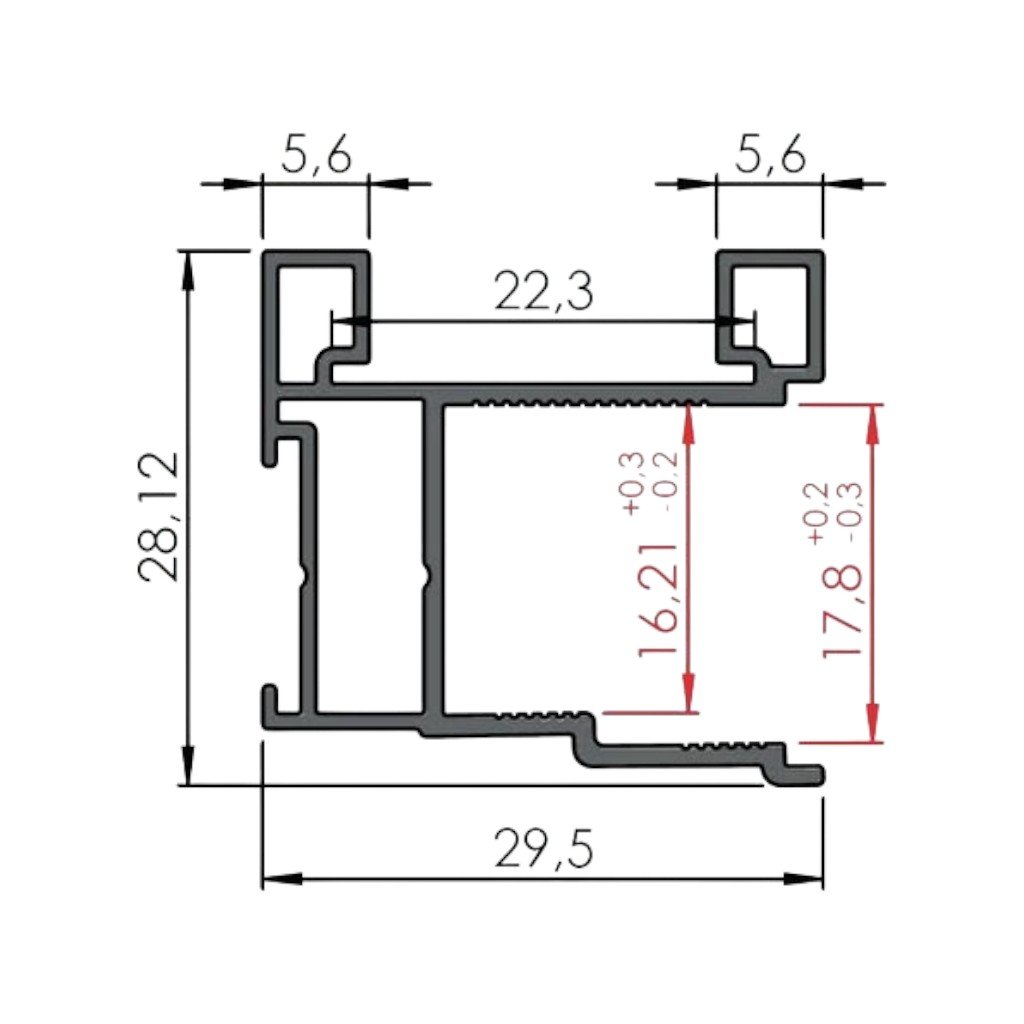 Madlo ETA WIDE je vyrobené z hliníka a má elegantný čierny matný povrch. Je určené pre dosky s hrúbkou 18 mm a je vhodné na použitie v rôznych nábytkových a posuvných systémoch, ako sú GAMA, GAMA II a RAMA. Madlo je nesymetrické a poskytuje pevné a pohodlné uchopenie pre posuvné dvere.