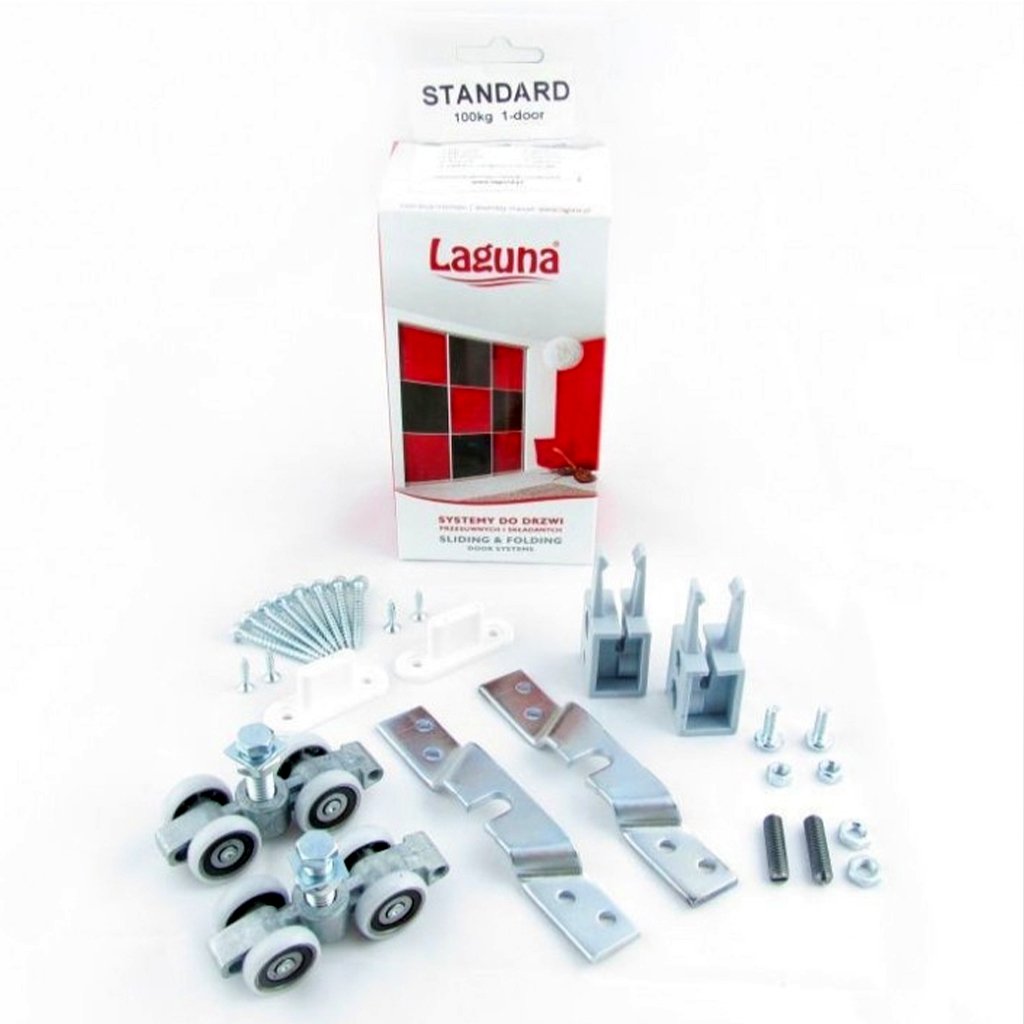 Sada LAGUNA Standard 100 kg je ideálnym riešením pre tých, ktorí hľadajú spoľahlivé a výkonné kovanie pre svoje interiérové posuvné dvere.