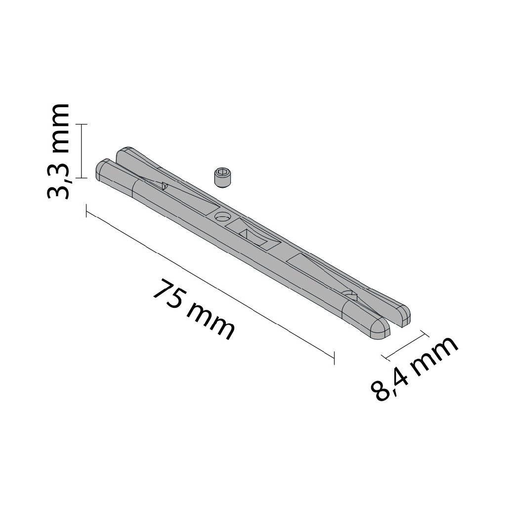 Plastový stoper RAMA je dôležitou súčasťou pre posuvné dvere do vstavaných skríň. Tento stoper slúži na zastavenie dverí v určenej polohe a zabraňuje ich samovoľnému pohybu. Inštaluje sa jednoducho do drážky dolnej koľajnice RAMA, čo zabezpečuje presné umiestnenie a spoľahlivosť pri každom použití.