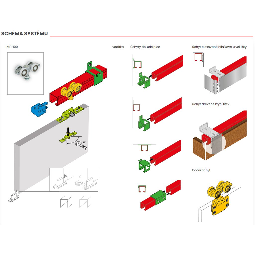 - Použitie: Upevnenie pre posuvné systémy v interiéroch