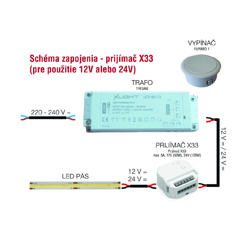 LED Doplnky - Prijímač X33 - Zap/Vyp, Stmievač
