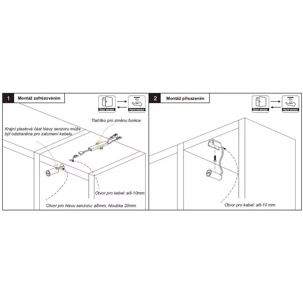 Skladá sa zo snímača a riadiacej jednotky. Pomocou tlačidla je možné prepínať medzi funkciami - IR senzor dverný alebo IR senzor na mávnutie.