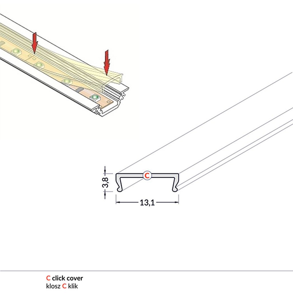 WIRELI C KLIP ČIRÝ je vysoko kvalitný číry difúzor navrhnutý pre LED profily, ktorý zabezpečuje maximálnu svetelnú priepustnosť a zároveň chráni LED pásy pred vonkajšími vplyvmi.