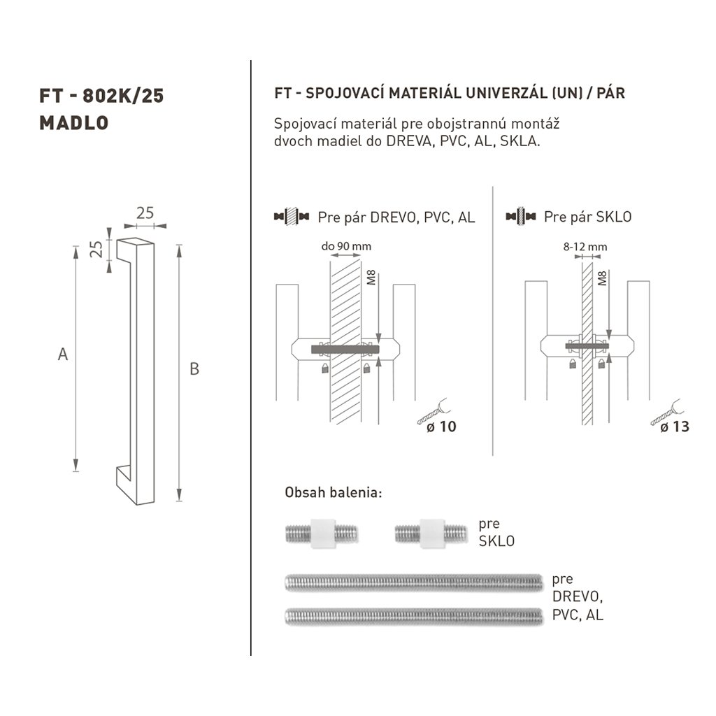 Vyrobené z vysokokvalitnej nehrdzavejúcej ocele (nerez), ponúka vynikajúcu odolnosť a dlhú životnosť. Profil madla je 25 x 25 mm, čo zaisťuje pevný a pohodlný úchop. Sada UNIVERZÁL (UN) obsahuje všetok potrebný spojovací materiál pre obojstrannú montáž do dreva, PVC, AL alebo skla. Ideálne pre moderné aj tradičné interiéry, madlo K02K dodáva dverám elegantný vzhľad a maximálnu funkčnosť.