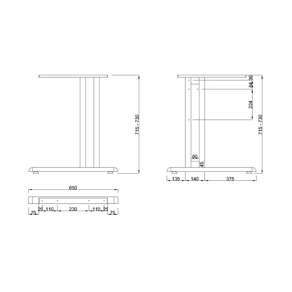 - Rozmery: 650 × 715–730H mm