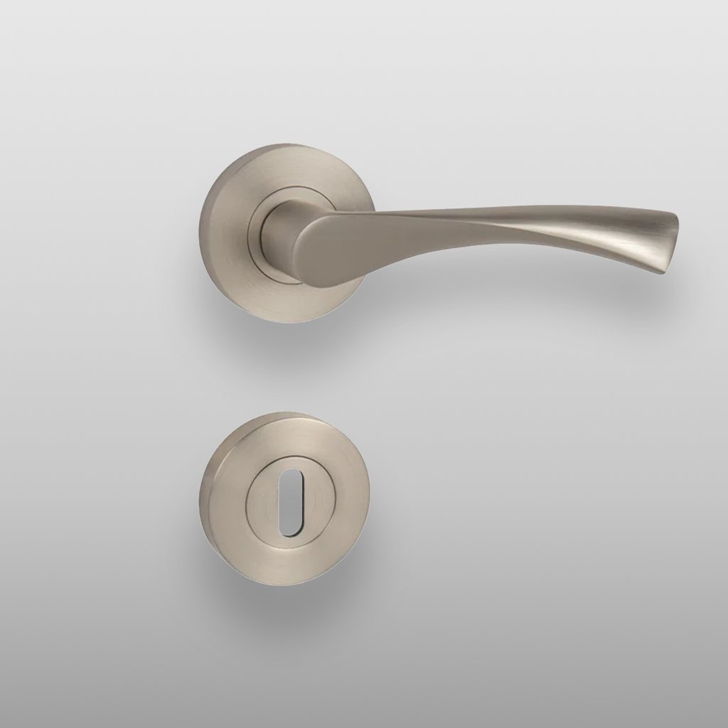 Kvalitná dverová kľučka Spirit - R v niklovom matnom prevedení kombinuje moderný dizajn s vysokou funkčnosťou. Jej ergonomický tvar zabezpečuje pohodlné uchopenie, zatiaľ čo odolný materiál zaručuje dlhú životnosť a odolnosť voči opotrebeniu. Ideálna pre interiérové dvere v domácnostiach aj komerčných priestoroch.