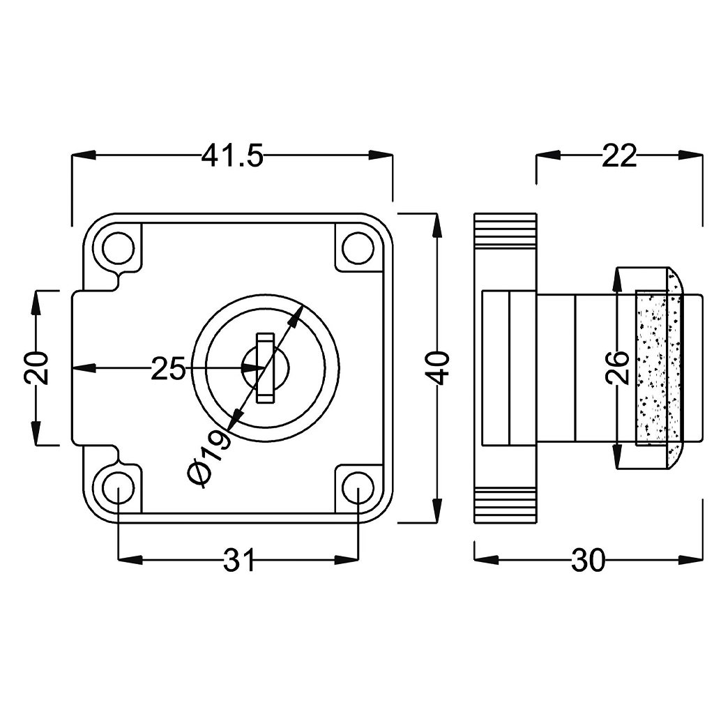 Nábytkový zámok cylindrický 25DM zapustený s rôzn. uzam. niklový