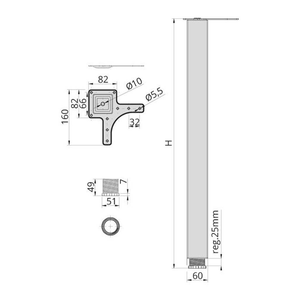 Moderná štvorcová stolová noha DN-271 kombinuje funkčnosť s čistým, minimalistickým dizajnom. Vďaka matnému chrómovému povrchu a nastaviteľnej výške je ideálnym riešením pre stabilné a estetické podopretie stolových dosiek v moderných aj industriálnych interiéroch.