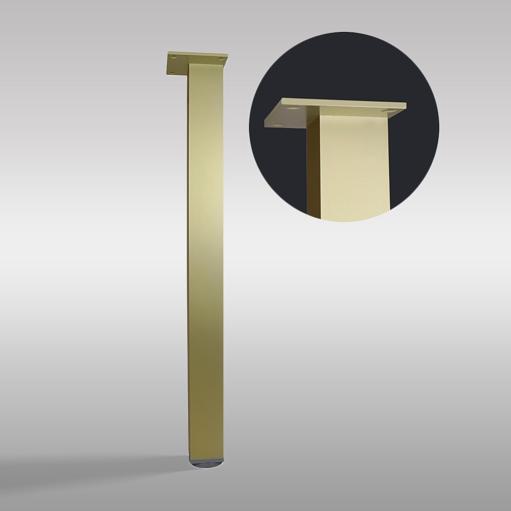 Moderná stolová noha MOB-R s elegantným štvorcovým profilom 60×60 mm je ideálnym riešením pre vytvorenie štýlového a stabilného nábytku. Vyrobená z odolného hliníka, s povrchovou úpravou v trendovej zlatej farbe, perfektne zapadne do moderných interiérov, kuchýň, kancelárií či obchodných priestorov.