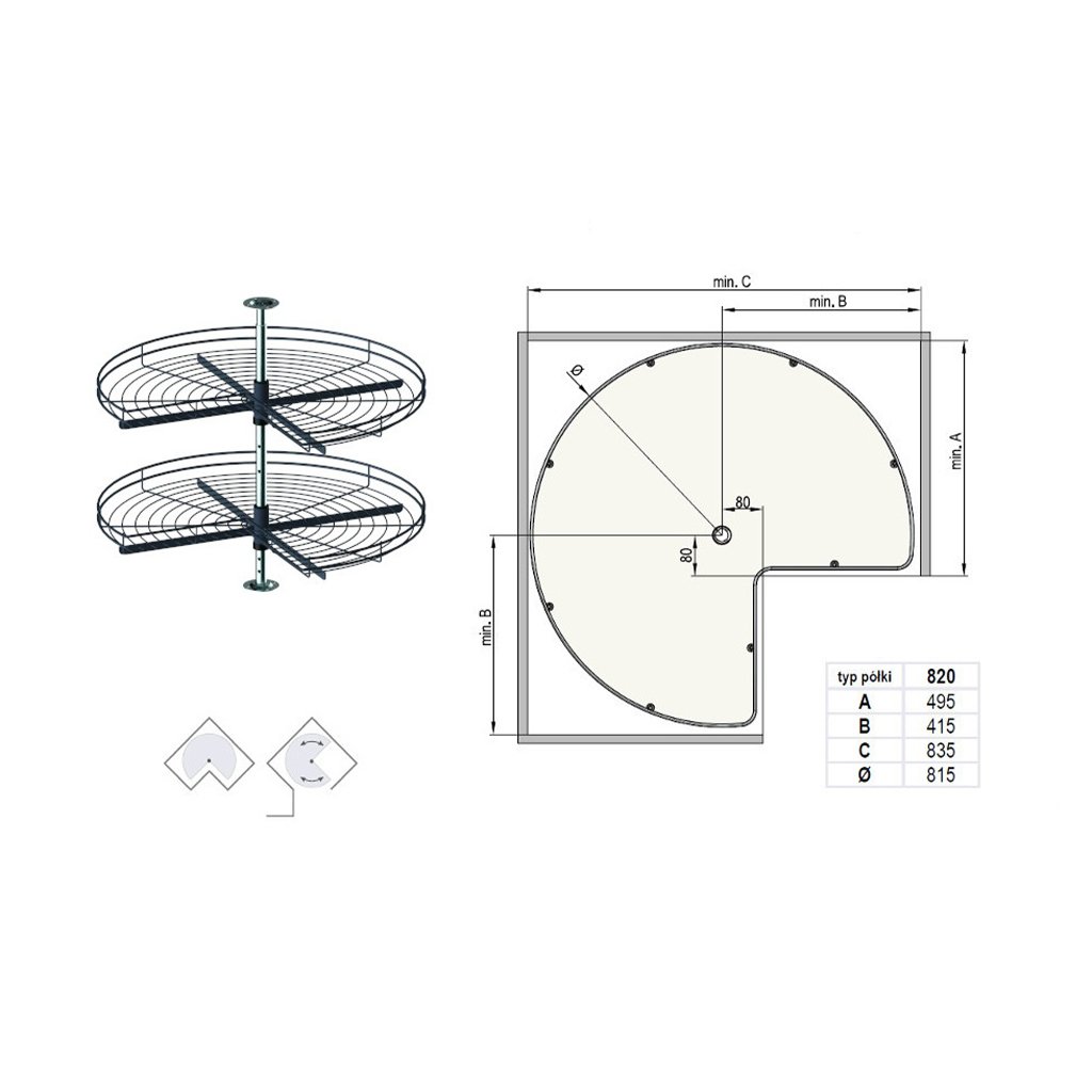 NOVA - košík karusel 270° Grafitová, 820 mm