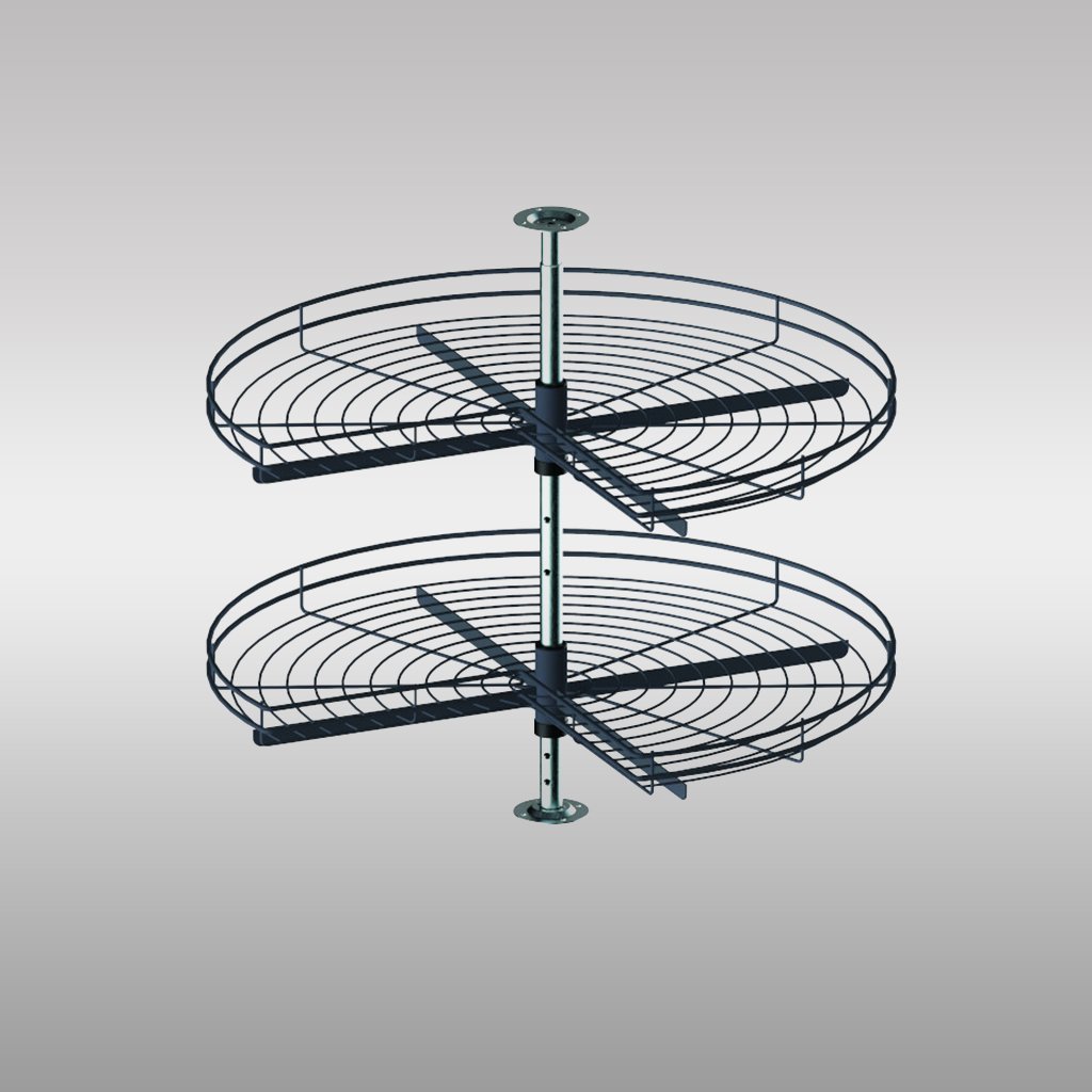Praktické riešenie pre rohové kuchynské skrinky – NOVA karuselový košík 270° v elegantnom grafitovom prevedení. Tento otočný úložný systém umožňuje maximálne využitie priestoru v rohových skrinkách s dvojkrídlovými dvierkami. Vďaka 270° otáčaniu máte jednoduchý prístup ku všetkému uloženému obsahu bez nepríjemného ohýbania alebo vyťahovania vecí zo zadných častí skrinky.