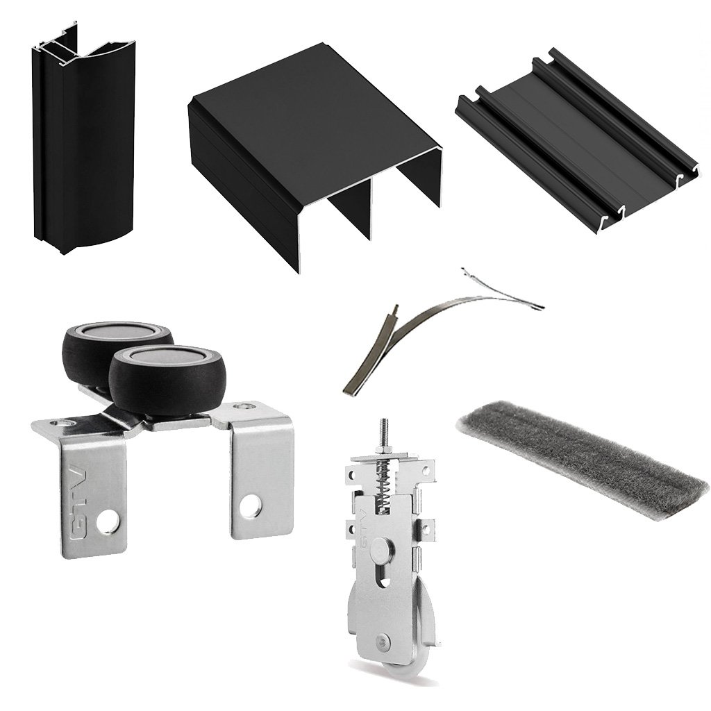 NOVO S - Posuvný systém na vstavanú skriňu (2 m zostava ) Čierna 2 x posuvné dvere