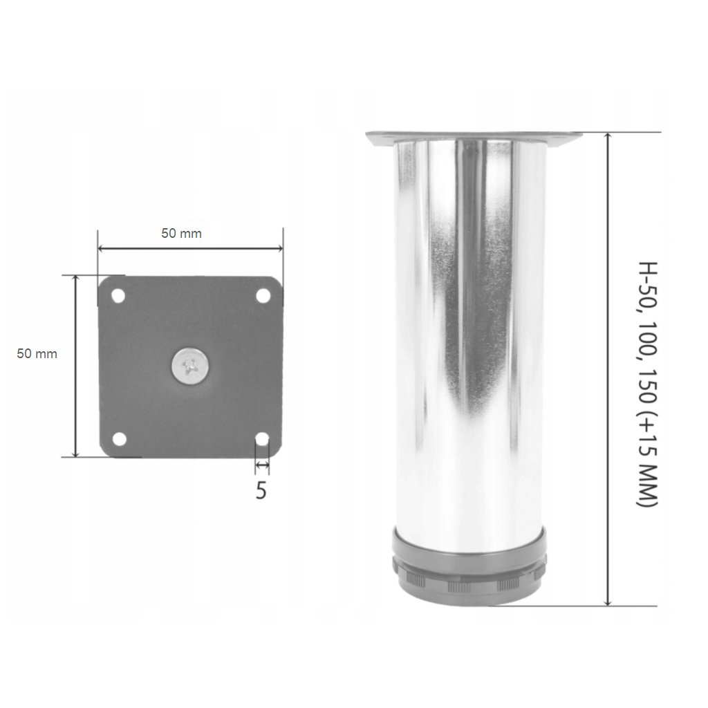 Nožička kruhová V50E je univerzálna kovová nábytková noha, doplnená kvalitným plastom pre optimálnu stabilizáciu nábytku. Vďaka výškovo nastaviteľnej konštrukcii poskytuje spoľahlivú oporu pre kuchynský, kúpeľňový, kancelársky aj priemyselný nábytok. Elegantná farba je vhodná do akéhokoľvek priestoru a štýlu.
