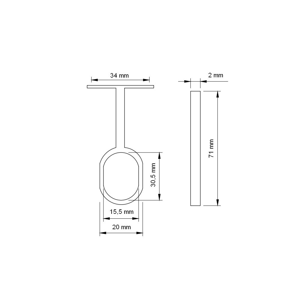 H-15,5mm, H1-20mm, L-71mm, A-30,5mm, A1-34mm., A2 - 2mm