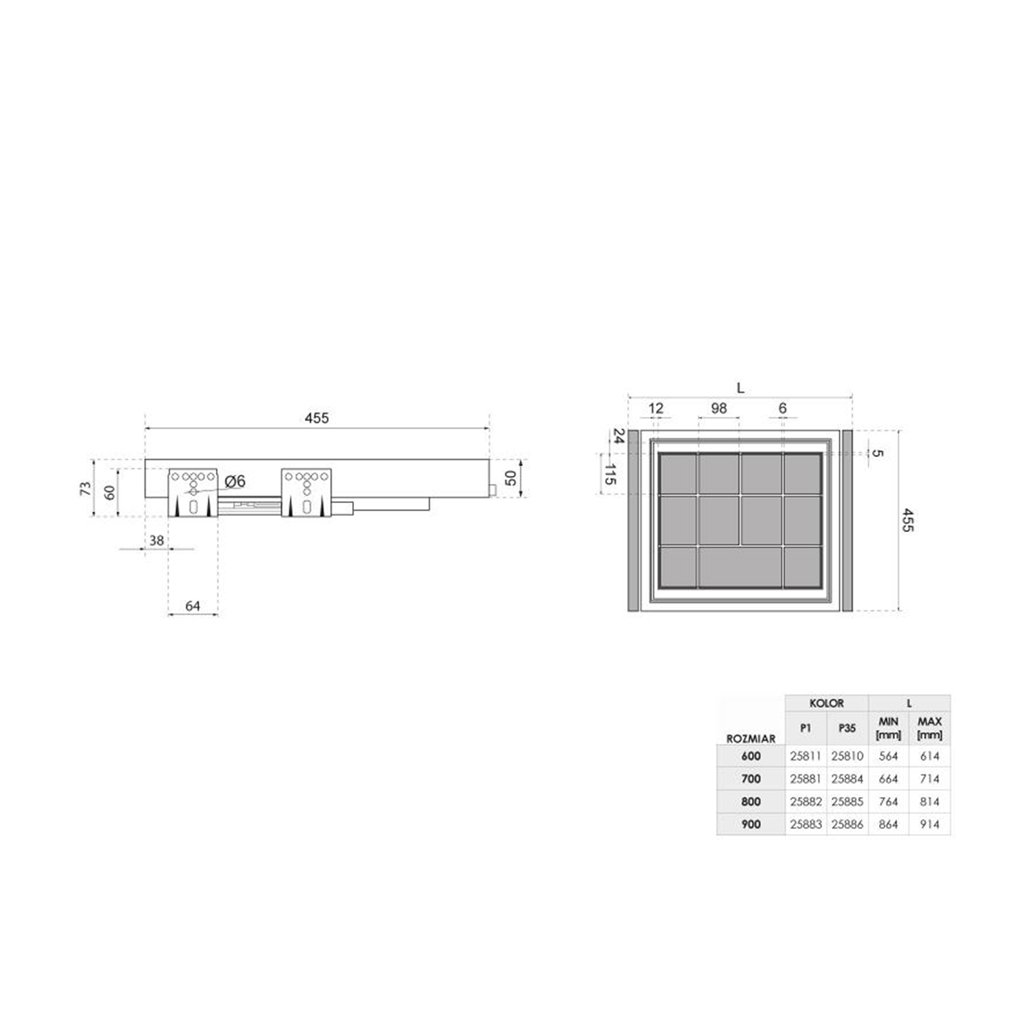 Nastaviteľná šírka: rám s rozsahom regulácie 564 – 614 mm sa jednoducho prispôsobí rôznym veľkostiam korpusov.