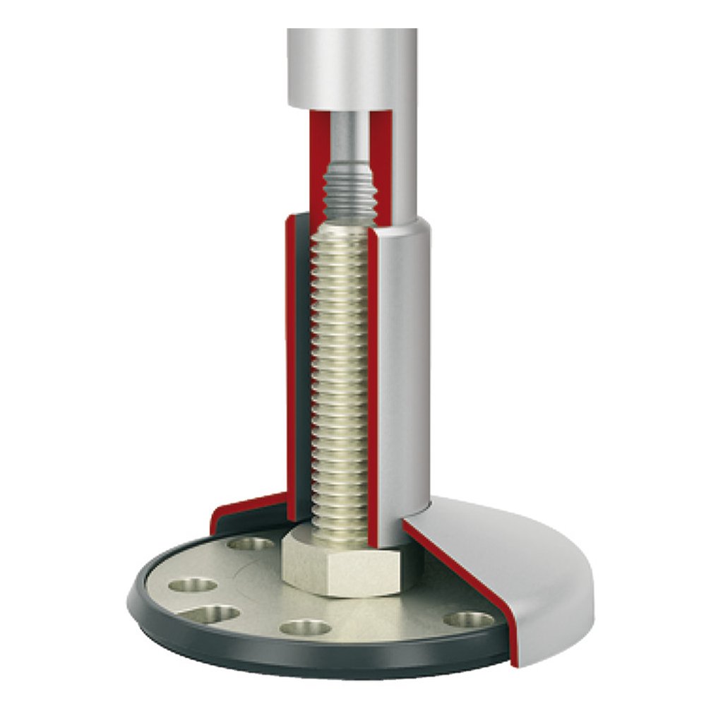 Podperná noha pre sanitárne deliace priečky je vyrobená z hliníka, s povrchovou úpravou strieborného eloxu. Je určená pre panely s hrúbkou 28 mm a má robustný oceľový stojan s pozinkovaním pre vysokú stabilitu a odolnosť. Tento systém je ideálny pre použitie v sanitárnych priestoroch, kde je potrebná pevná podpora deliacich priečok. Vďaka kvalitným materiálom zaručuje dlhú životnosť a spoľahlivosť v náročných podmienkach.
