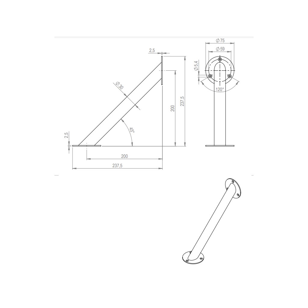Policová konzola rovnobežná, 45 stupňová, nerez
