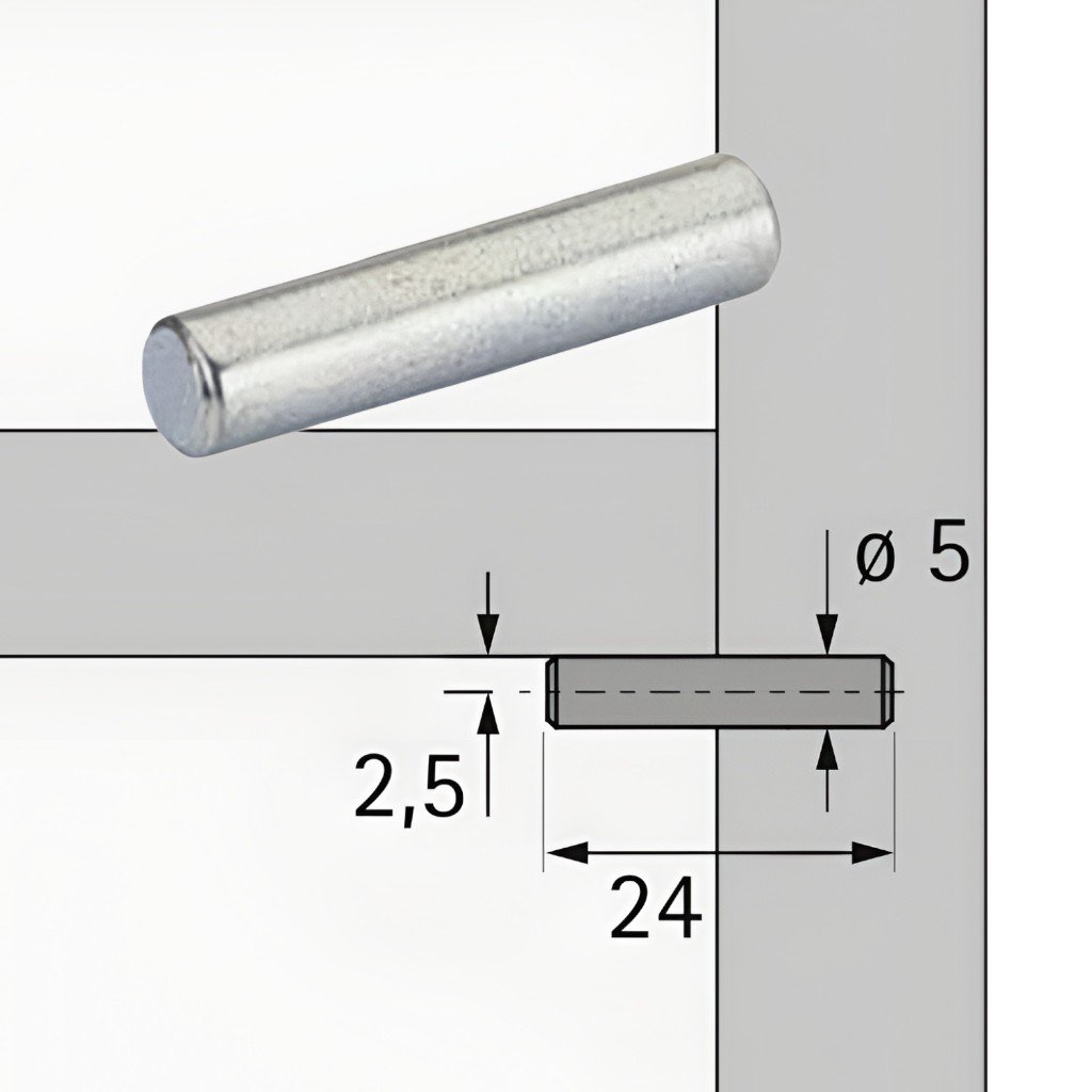 Policová podperka 5 x 24 mm je praktickým komponentom na nábytok, navrhnutým na bezpečné uchytenie políc. S priemerom 5 mm a dĺžkou 24 mm poskytuje pevnú stabilitu pre rôzne nábytkové aplikácie. Je vyrobená z kvalitného kovového materiálu, čo zaručuje dlhodobú odolnosť a spoľahlivosť. Vďaka svojej jednoduchosti sa ľahko montuje a je ideálnou voľbou pre skrinky, poličky či šatníky, pričom zaisťuje bezpečné a trvácne pripevnenie.