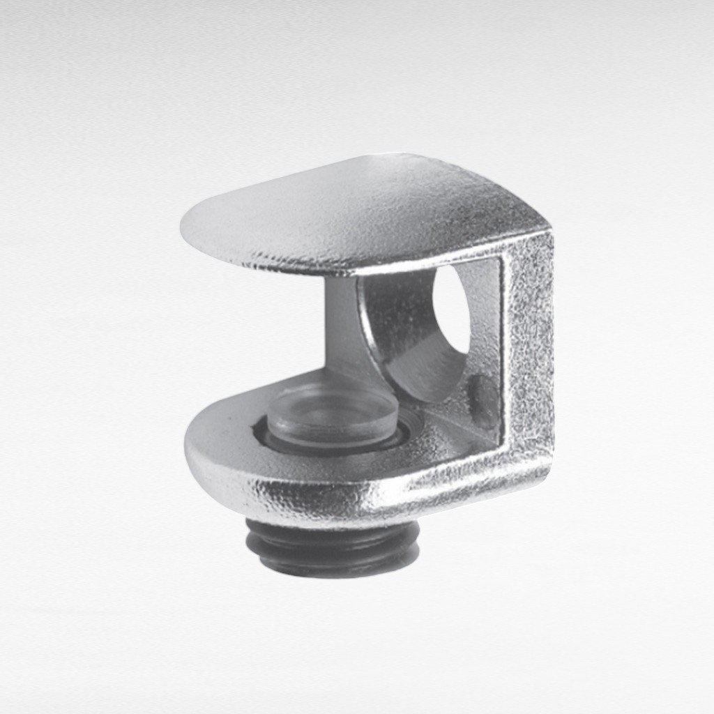 Policová podperka pre sklenenú policu, typ MV09 je navrhnutá špeciálne pre sklenené police na nábytok, poskytujúc bezpečné uchytenie a estetické riešenie. Táto podperka je vyrobená zo zinkozliatiny a má povrchovú úpravu v nikli, čo zaručuje dlhodobú odolnosť a moderný vzhľad. Je vhodná na pevné a stabilné uchytenie sklenených políc, čím zvyšuje funkčnosť a vzhľad nábytkových zostáv.