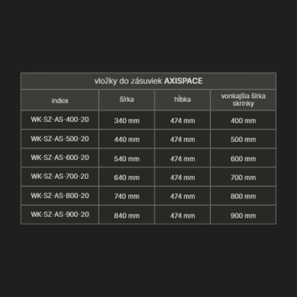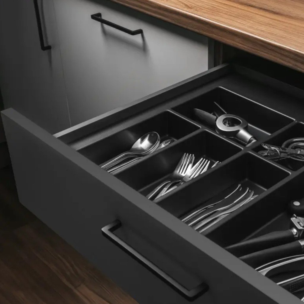 Príborníky Axispace sú praktické organizéry do zásuviek, ktoré vám pomôžu udržiavať poriadok a prehľadnosť. S precízne navrhnutými priehradkami prispôsobenými na rôzne druhy príborov a kuchynských pomôcok budete mať všetko na dosah ruky. Vyrobené z odolného plastu s vysokou odolnosťou proti poškriabaniu, tieto organizéry zaručujú dlhú životnosť. Vďaka možnosti úpravy rozmerov ich jednoducho prispôsobíte veľkosti každej zásuvky. Dostupné vo viacerých veľkostiach (340–840 mm), ideálne pre každý kuchynský priestor.