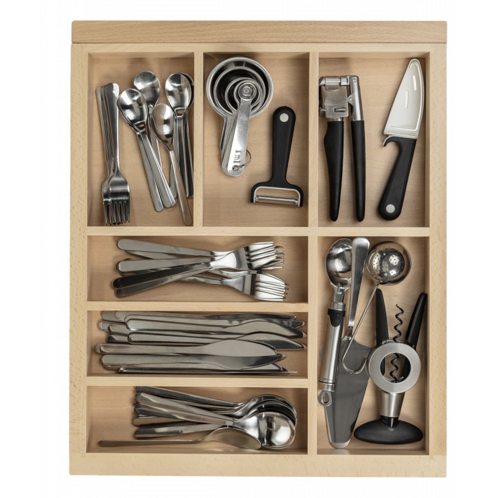 Organizéry sú povinným prvkom výbavy zásuviek moderného nábytku – vďaka nim sú funkčne vyvinuté, prehľadné a pohodlné na používanie. Kartuše GTV SERIES CUSTOMI sú určené do zásuvkového systému MODERN BOX a AXIS PRO – sú ich funkčným doplnkom a praktickou ozdobou. Vložky CUSTOMI sú vyrobené z kvalitného bukového dreva, ktoré ovplyvňuje nadčasový štýl tejto kolekcie. Drevo vďaka svojmu univerzálnemu charakteru krásne zapadne do každej kuchynskej stavby. Organizéry sú navyše povrchovo upravené matným lakom, ktorý poskytuje dodatočnú ochranu proti poškodeniu a zároveň zdôrazňuje a zvýrazňuje teplú farbu bukového dreva.