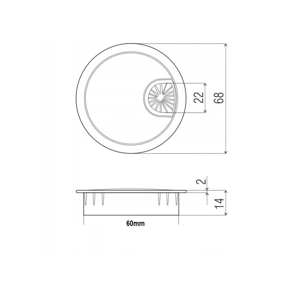 Priechodka káblová, kovová KLIK, 60 mm, čierna matná