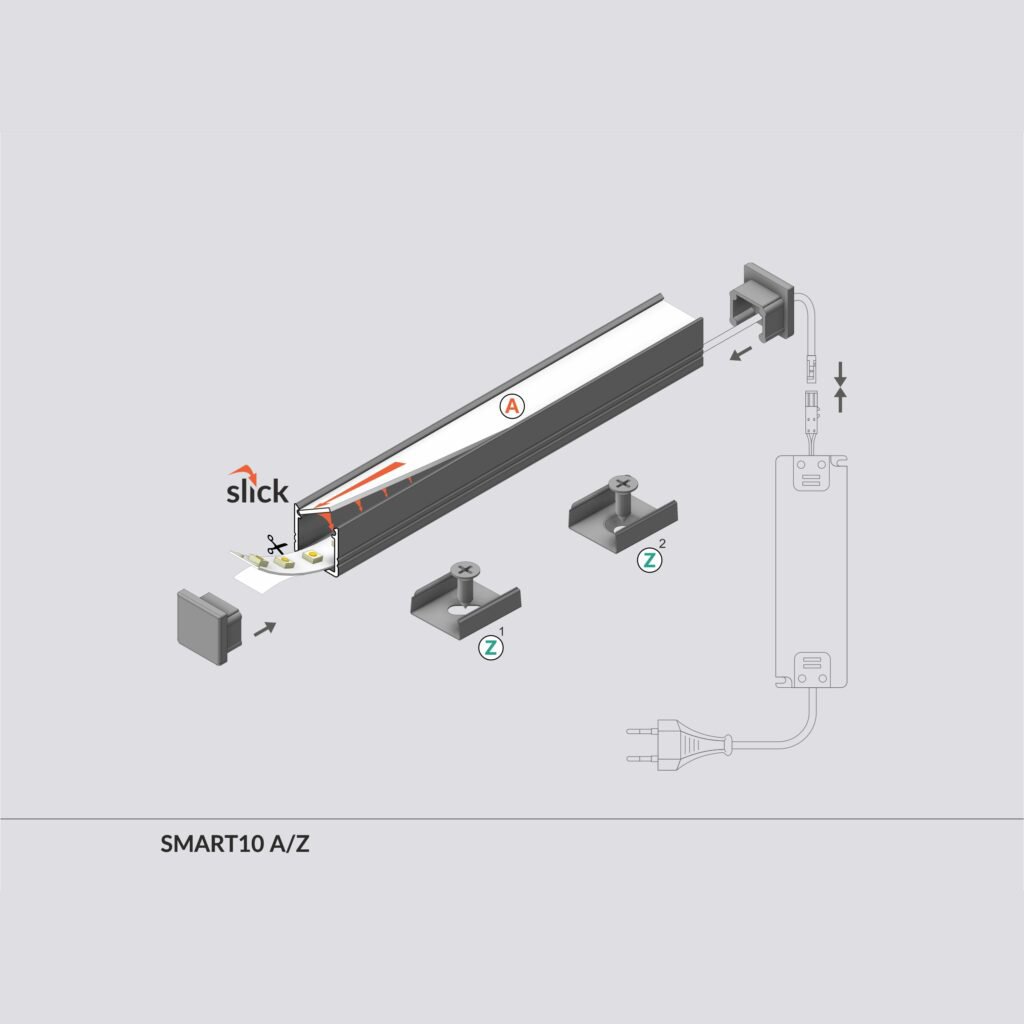 Univerzálny miniatúrny dizajnový profil je elegantné riešenie pre osvetlenie pomocou LED pásov. Vďaka väčšej zástavnej hĺbke je možné použiť aj pásy s hustotou 120 LED/m a vytvoriť tak úzke svetelné línie bez viditeľných svetelných bodov.