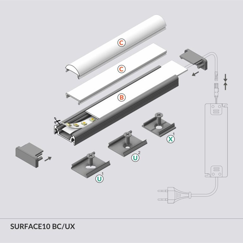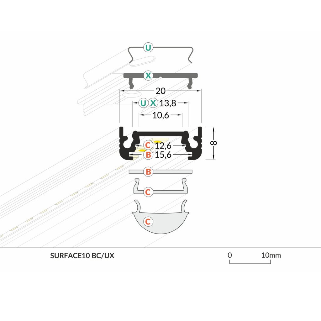 Vyberte si profil WIRELI SURFACE10 BC/UX, aby ste dosiahli moderné a kvalitné osvetlenie s elegantným dizajnom, ktorý podčiarkne štýl vášho interiéru.