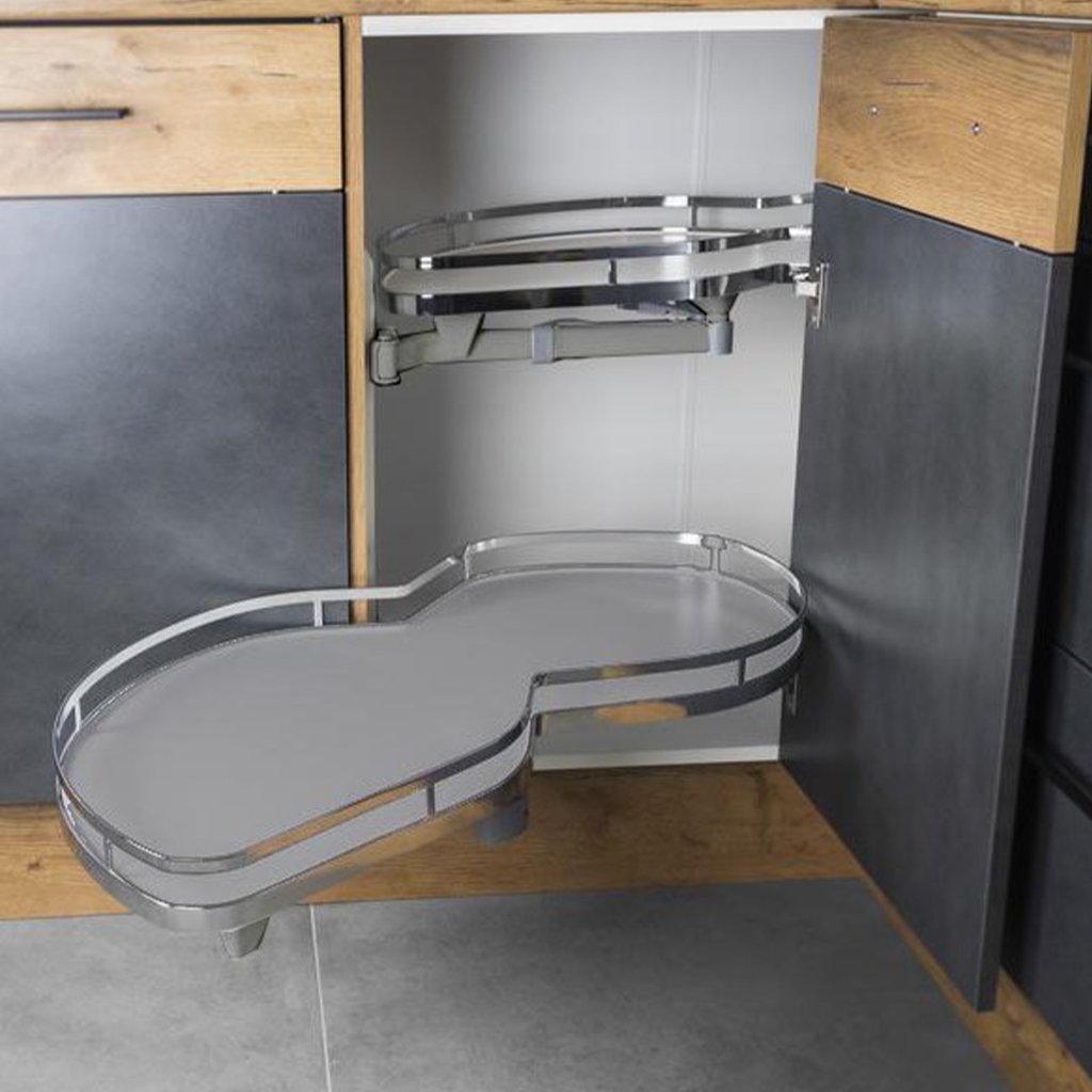 Tento kôš je vybavený dvomi pohyblivými policami s funkciou samozatvárania, vďaka čomu sa ľahko a bez problémov dostaneme k hlboko ukrytým kuchynským veciam.